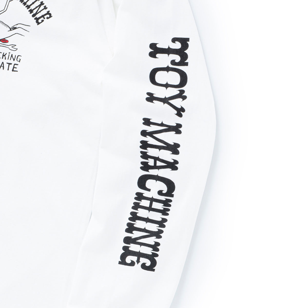 味のあるフォントでブランドロゴが落とし込まれたロンT。プリント箇所は背面と左胸、左袖とアシンメトリーなデザインを採用しており、シンプルながらも存在感バツグンです。また、文字のまわりにはしゃいでいるセクトがあしらわレており気分を高めてくれる。
