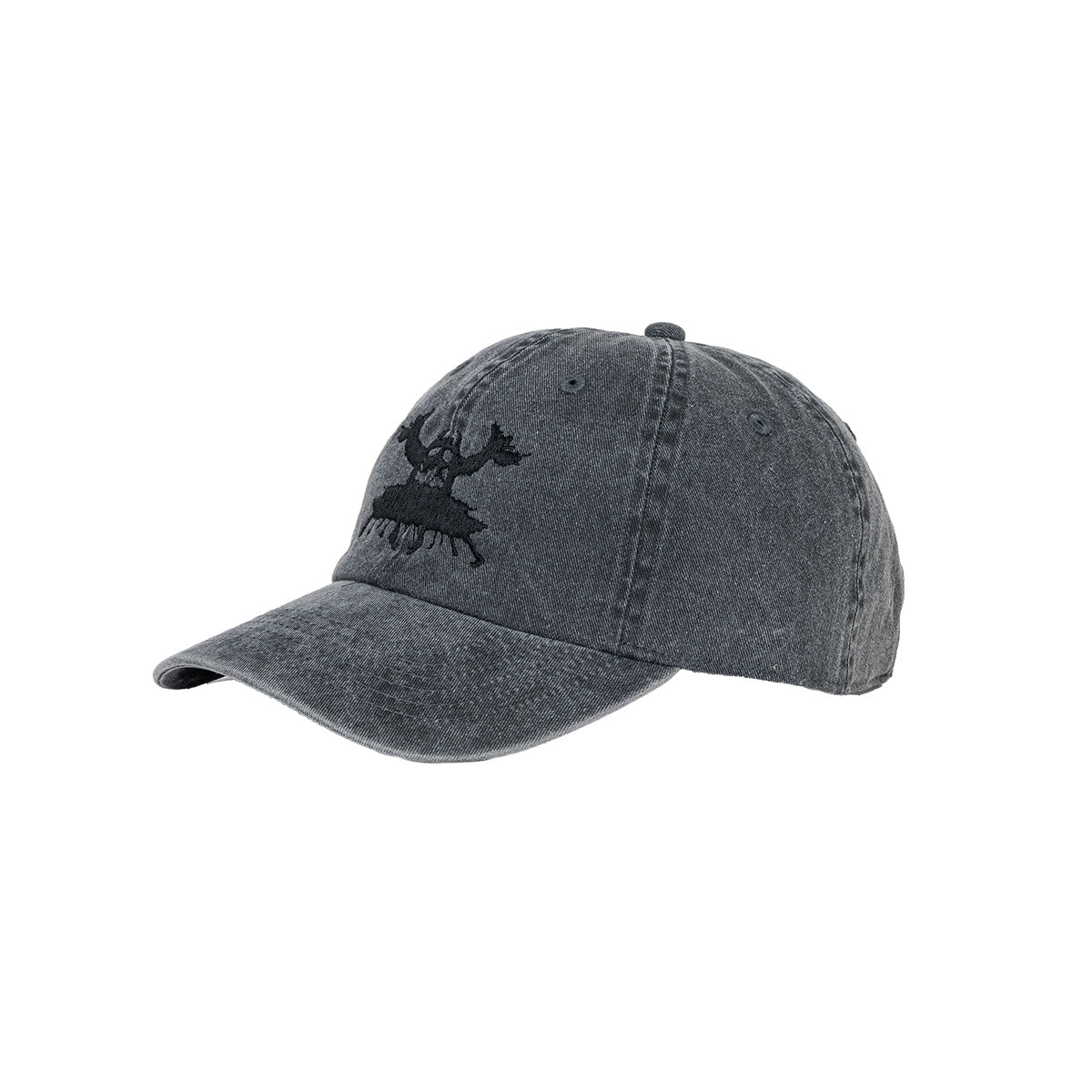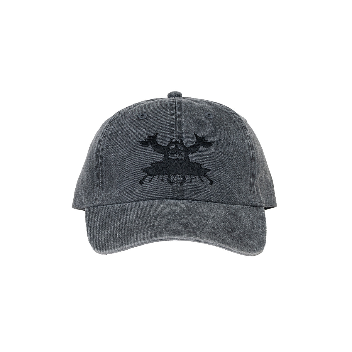ロールシャッハテストを彷彿とさせるモンスターグラフィックがフロントパネルに刺繍で落とし込まれたキャップ。絶妙な色合いのデニムボディがデザインにマッチしており、シンプルながらも存在感抜群。同じデザインのパーカと合わせるなんて楽しみ方もオススメだ。