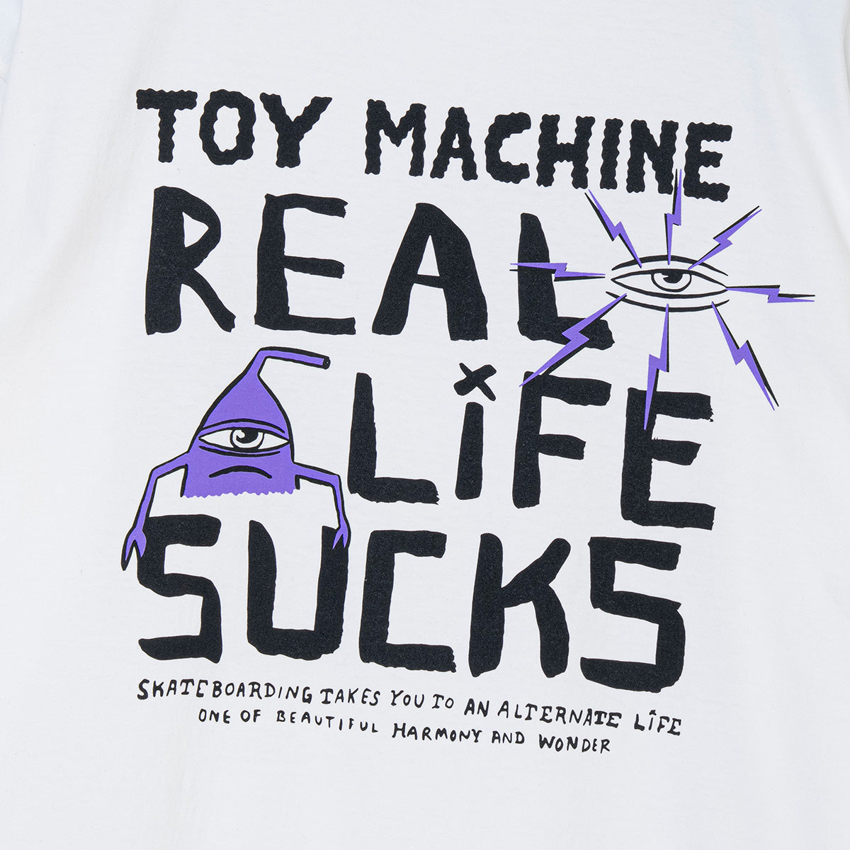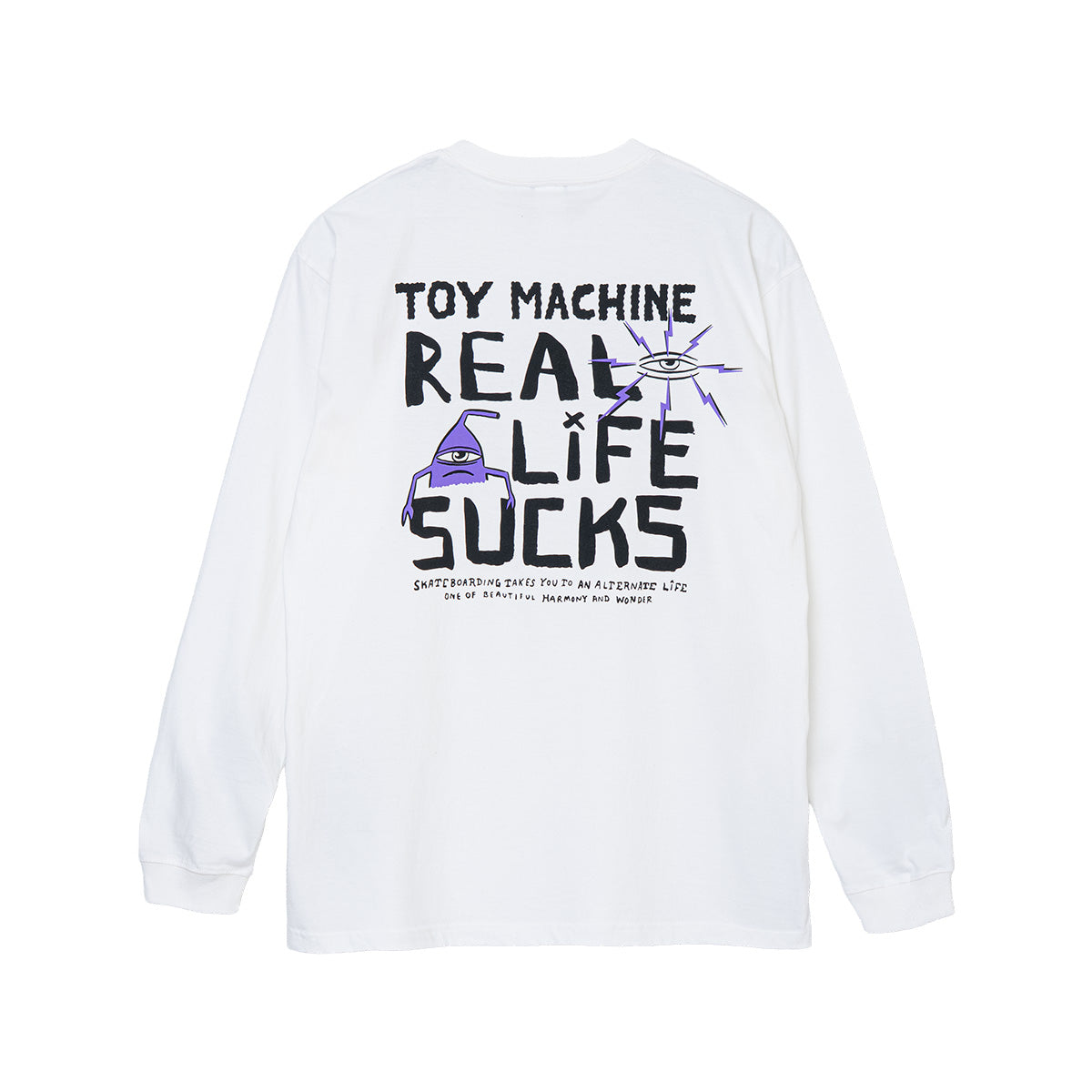 背面に落とし込まれた”REAL LIFE SUCKS”の文字が存在感を放つロンT。袖はプリントなしの潔いデザインでインナーとしても使いやすい。フロントに落とし込まれたブランドロゴとセクトの目も雰囲気満点で、トイマシーンのファンならずとも要注目のアイテム。