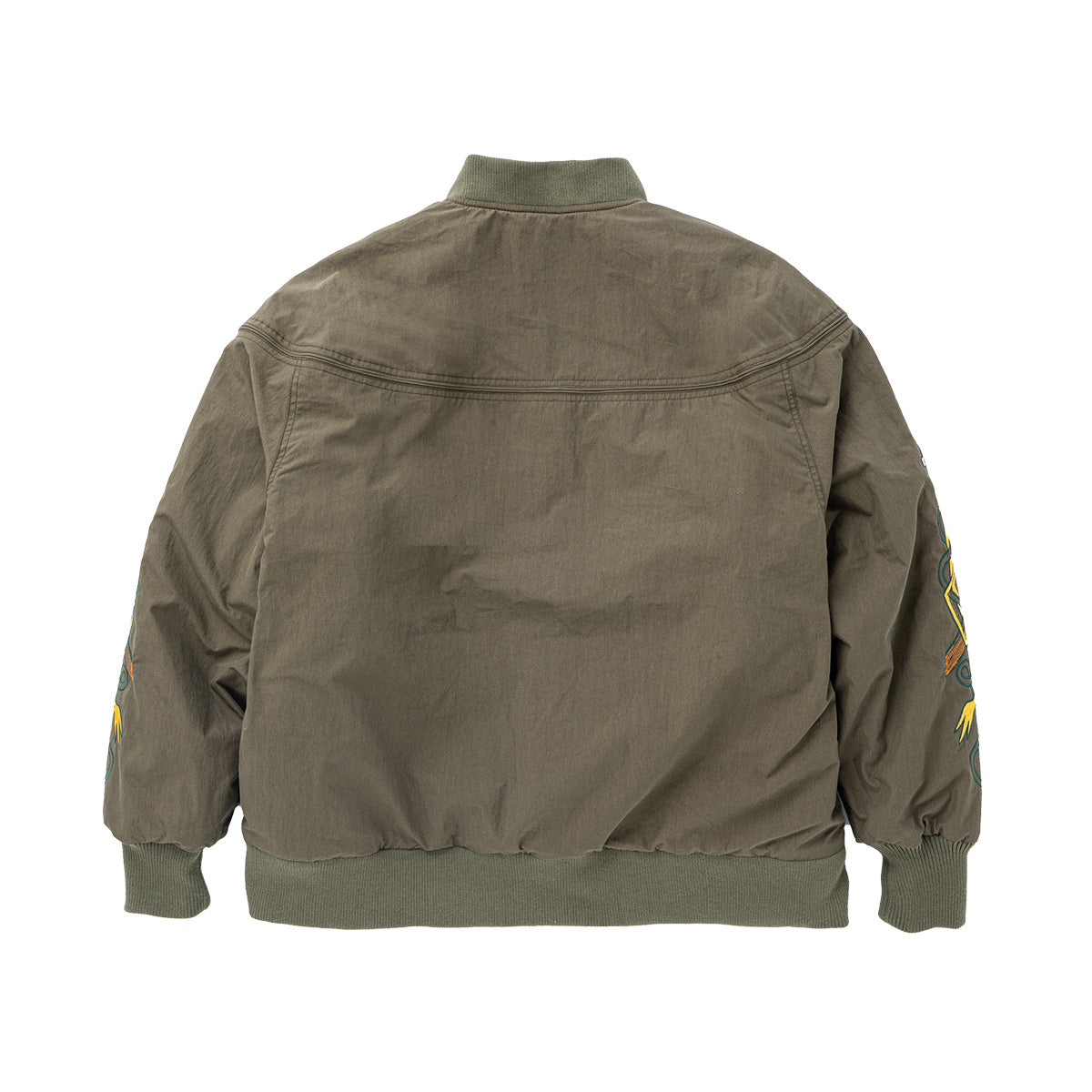 西海岸のスケーターに愛されているダービージャケットの両袖に十字架を小脇に抱えるセクトをあしらいトイマ流にアップデート。胴部分はシンプルに大人っぽく仕上げており、プリント物のカットソーやスウェットなんかを入れ込んでも破綻のないスタイリングが完成。