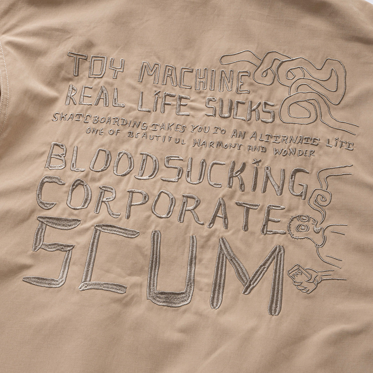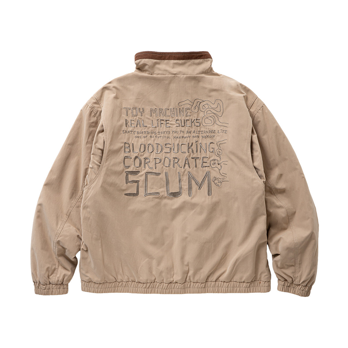 トイマらしいユニークな刺繍のディテールが随所に施されたブルゾン。レトロなアウトドア、ハンティングウェアを彷彿とさせるデザインだけあり、フリースライニングを施した高い機能性もポイントの1つ。レトロ感のあるルーズなシルエットも今の気分にピッタリハマる。
